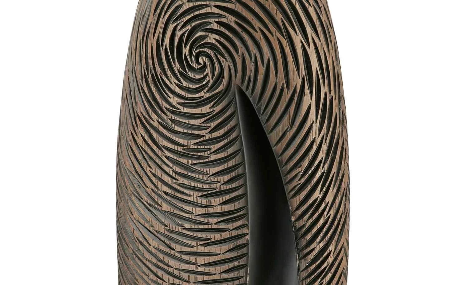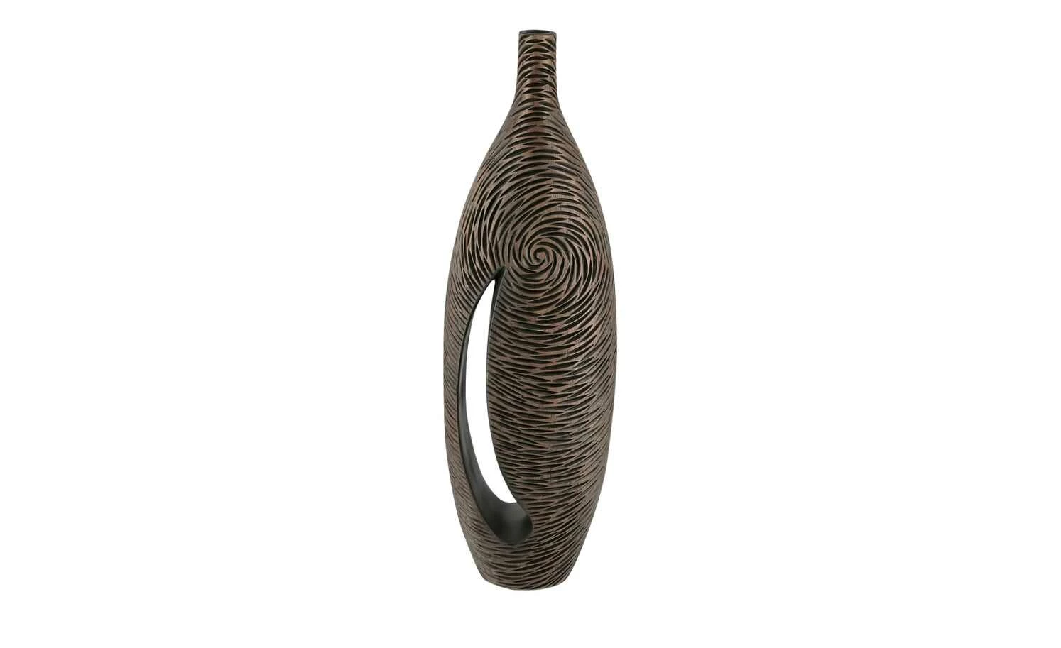 Mit dieser hohen Deko-Vase im rustikalen und zugleich zeitlosen Stil erwerben Sie ein attraktives Accessoire für Ihre Wohn- und Arbeitsräume. Dank ihrer Gestaltung in klassischem Dunkelbraun fügt sie sich nahtlos in Ihre Einrichtung ein. Gefertigt aus Polyresin ist die Vase robust und zugleich pflegeleicht und für die Verwendung im Innenbereich geeignet.