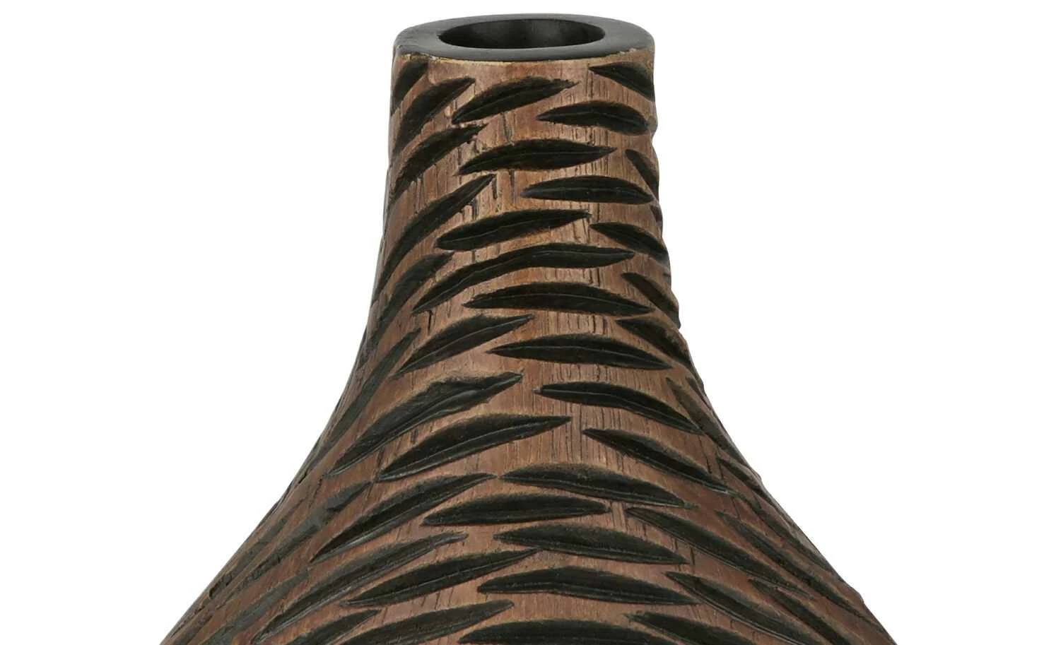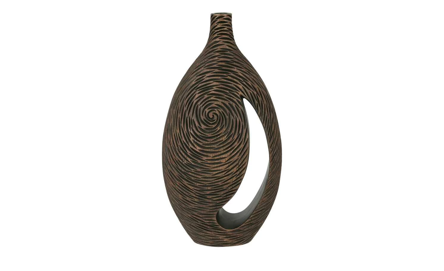 Aufwendig gestaltet und rustikal präsentiert sich diese Deko-Vase, die schnell zum attraktiven Blickfang in Ihren Räumlichkeiten avanciert. Ihr klassisches Dunkelbraun fügt die Vase nahtlos in nahezu jede bestehende Einrichtung ein. Gefertigt aus Polyresin ist das Accessoire pflegeleicht und besonders widerstandsfähig.