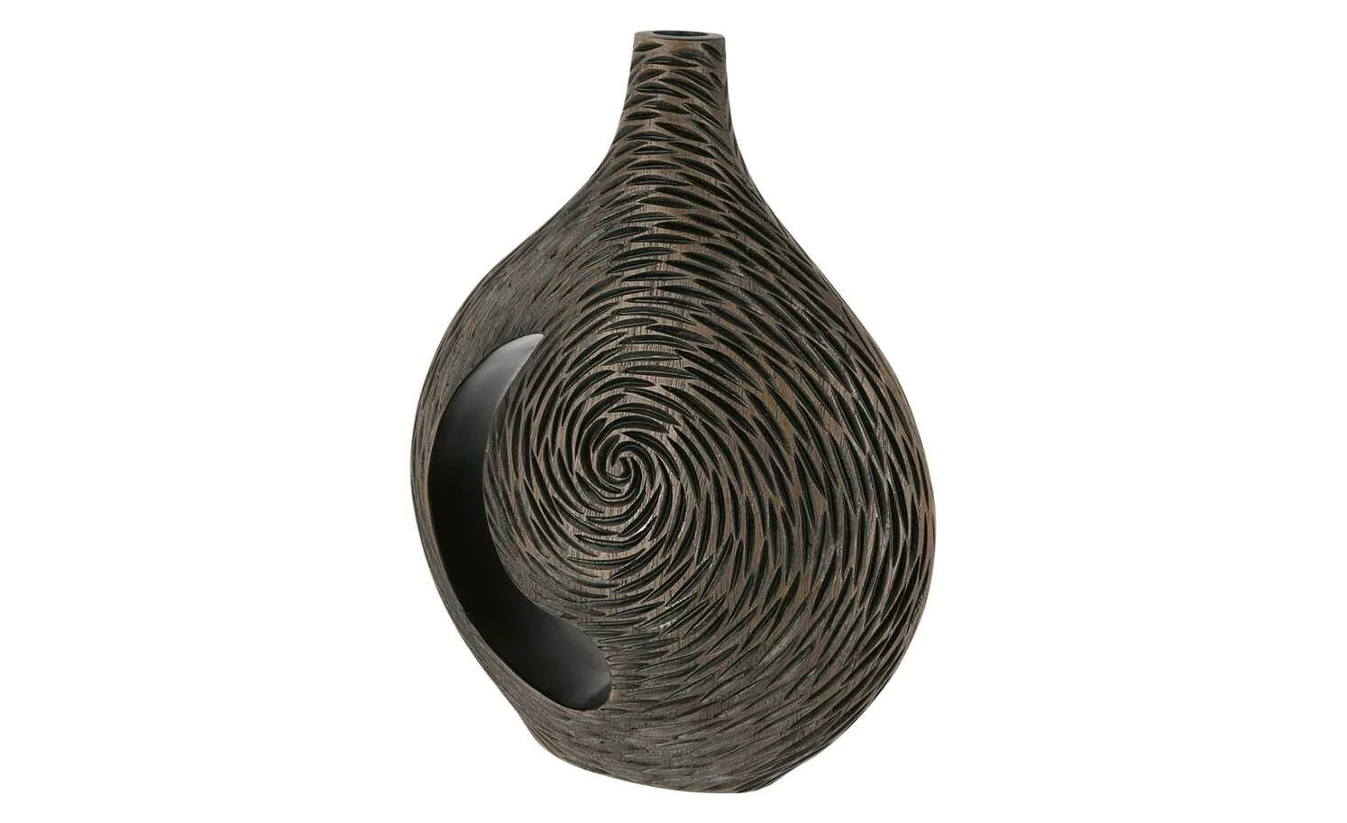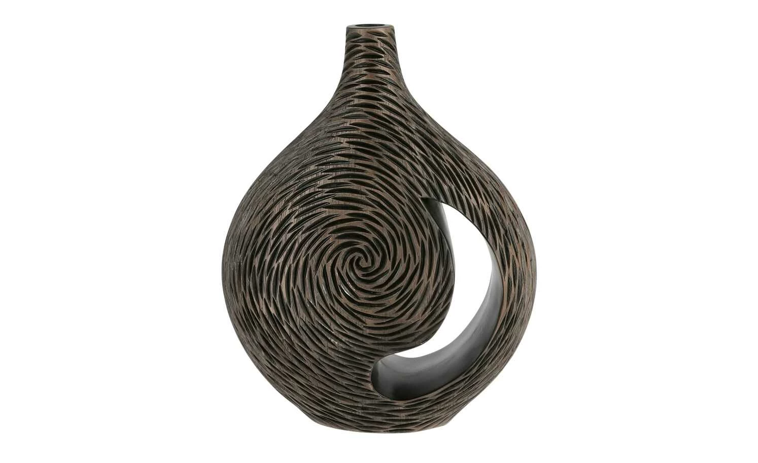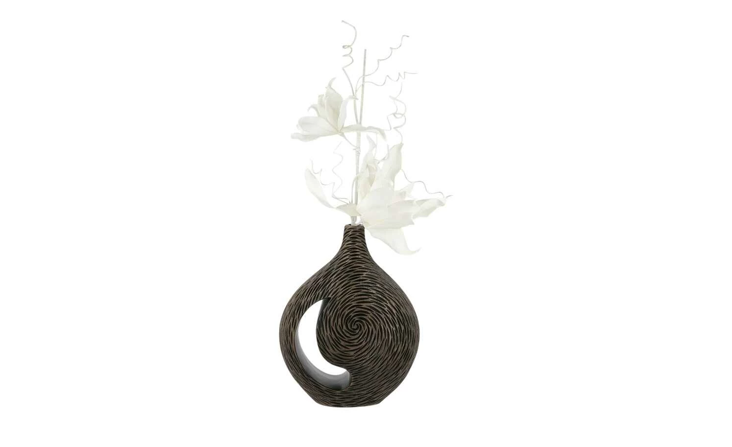 Diese bauchige Deko-Vase in rustikalem und zugleich zeitlosem Design fügt sich dank ihrer Gestaltung in vielseitigem Dunkelbraun nahtlos in Ihre Einrichtung ein. Sie besteht aus Polyresin, einem Material mit pflegeleichten und robusten Eigenschaften. Die Vase ist für die Verwendung in Innenräumen geeignet.