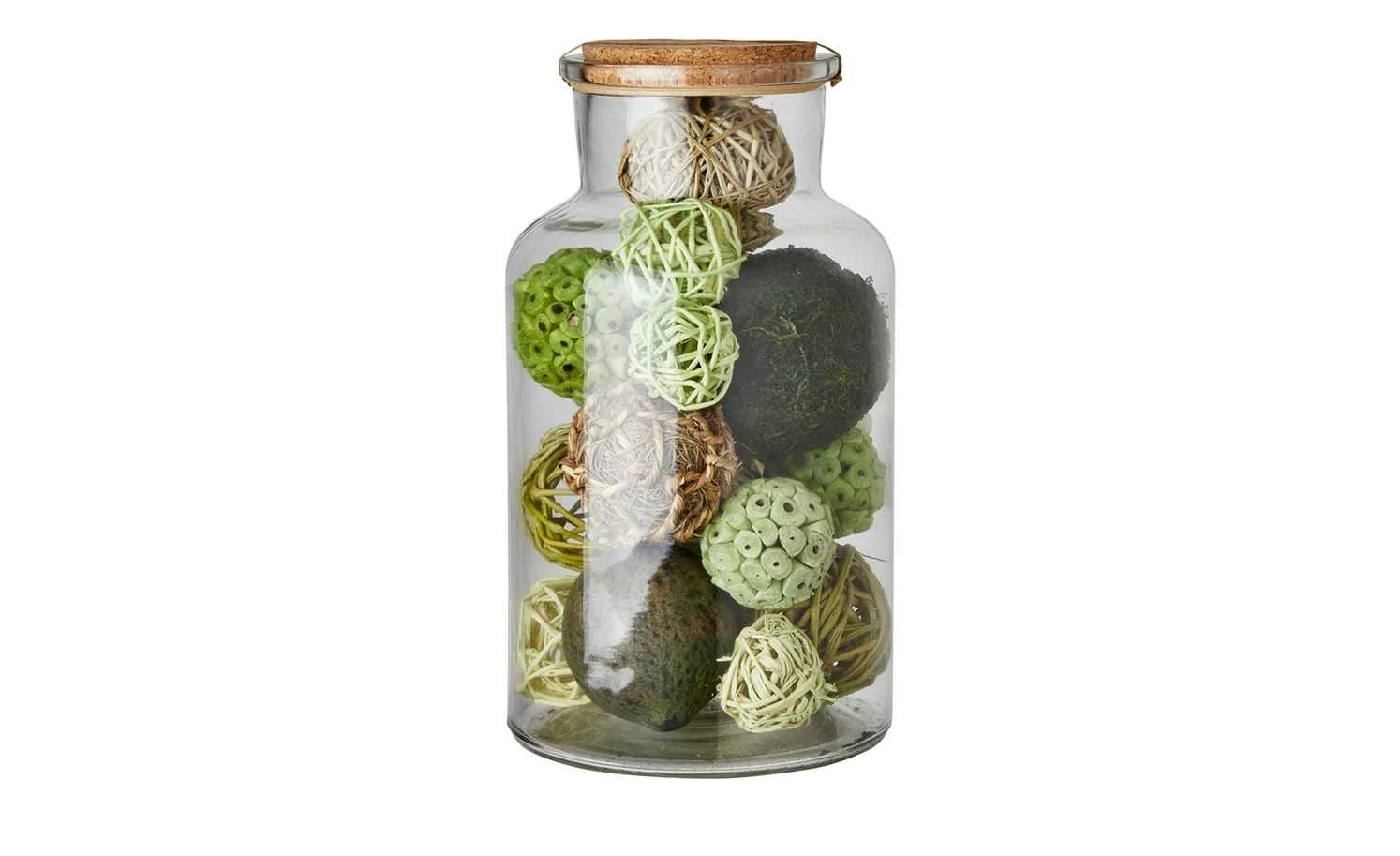 Dekokugeln im Glas mit Korkdeckel