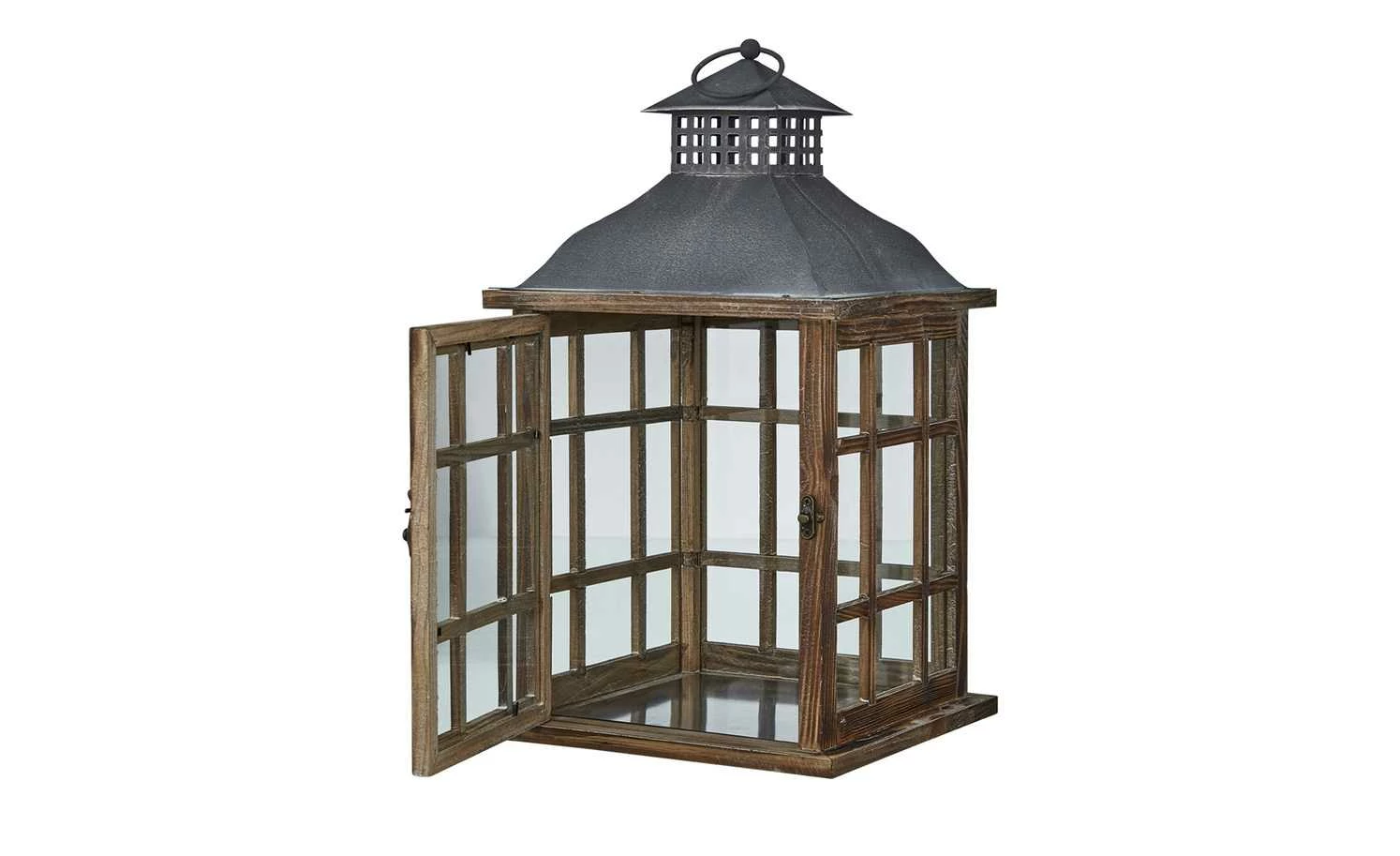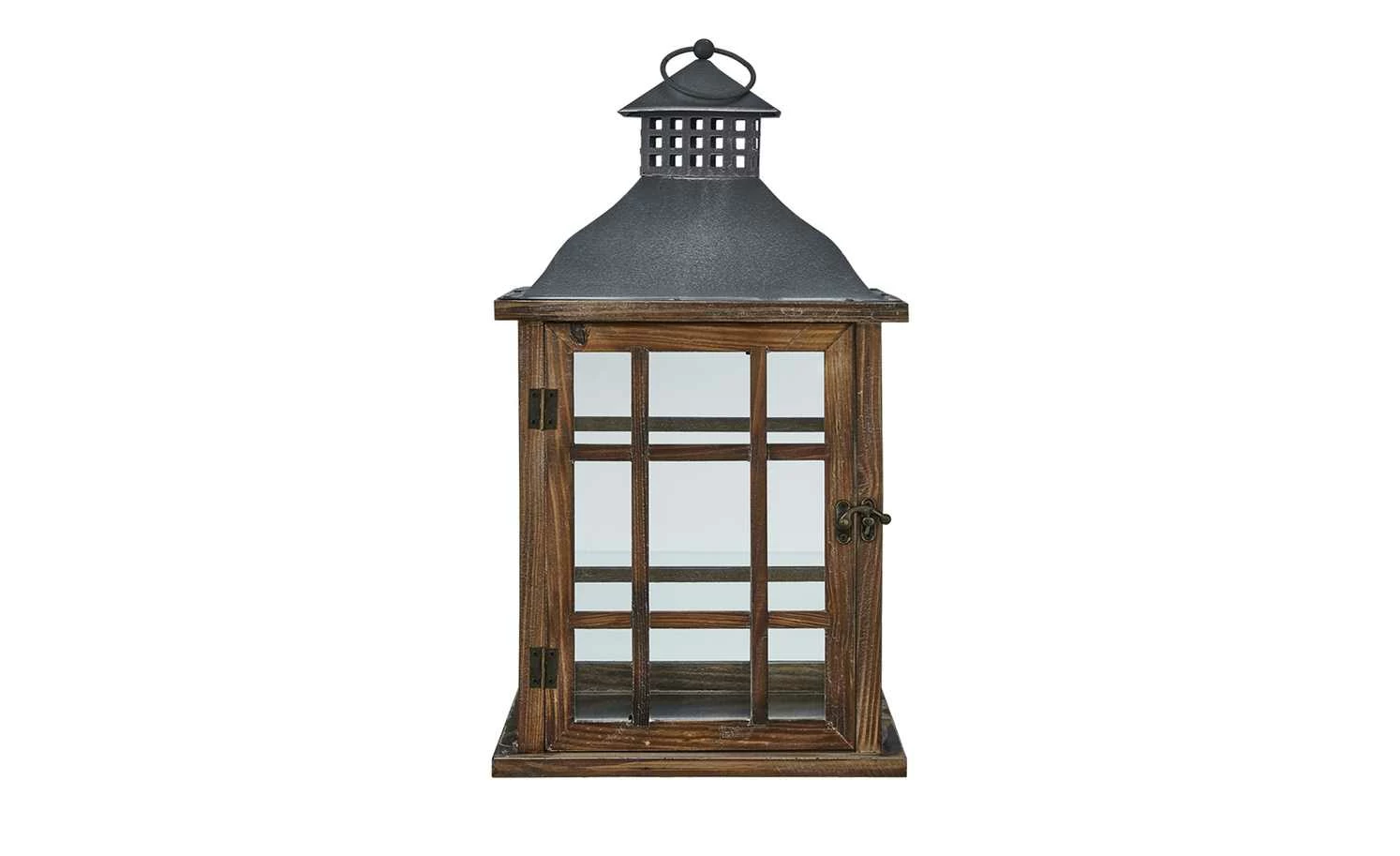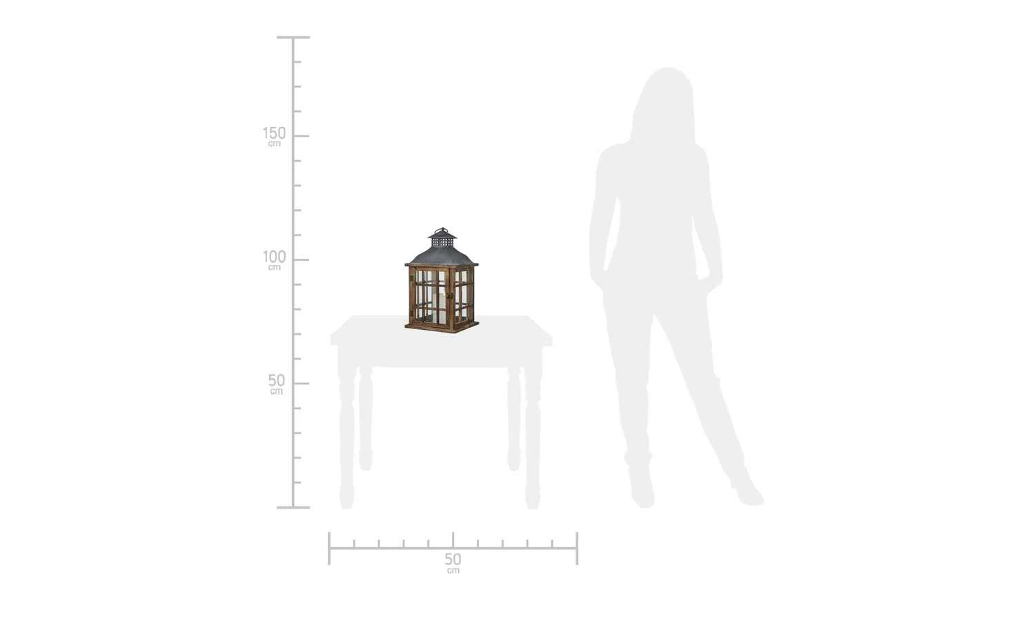 Gemütliches Hüttenflair kommt mit dieser schönen Holzlaterne auf. Im Inneren des Holzgehäuses finden Sie Platz für eine Stumpenkerze, die von allen Seiten gut sichtbar ist. Kontrast und Highlight zugleich ist das Dach der Holzlaterne. Dieses besteht aus Metall und besitzt ein attraktives Oberflächenfinish, wodurch das Erscheinungsbild der Laterne gekonnt akzentuiert wird.