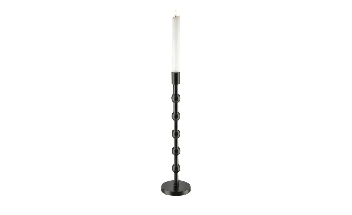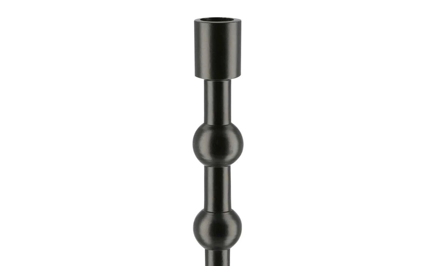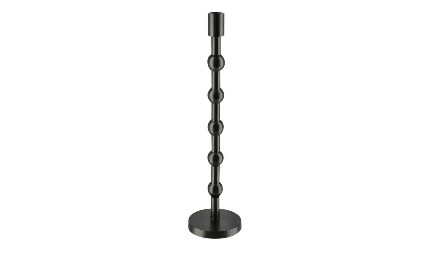 Der mattschwarze Kerzenständer ist modern, edel und mühelos mit allen Kerzenfarben kombinierbar. Je nach Höhe des Kerzenständers verzieren zwei, drei oder fünf kugelförmige Verdickungen den Standfuß. Nutzen Sie den trendigen Kerzenhalter zum Beispiel mit roten oder tannengrünen Stabkerzen, um ein weihnachtliches Ambiente zu schaffen.