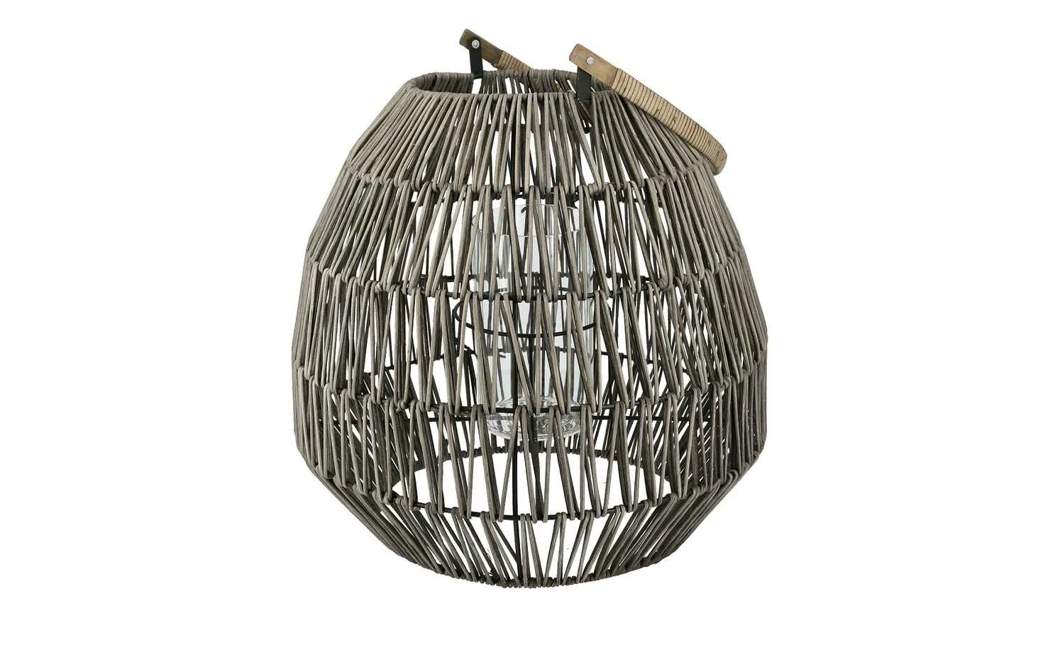 - Laterne aus dunkelgrauem Rattangeflecht