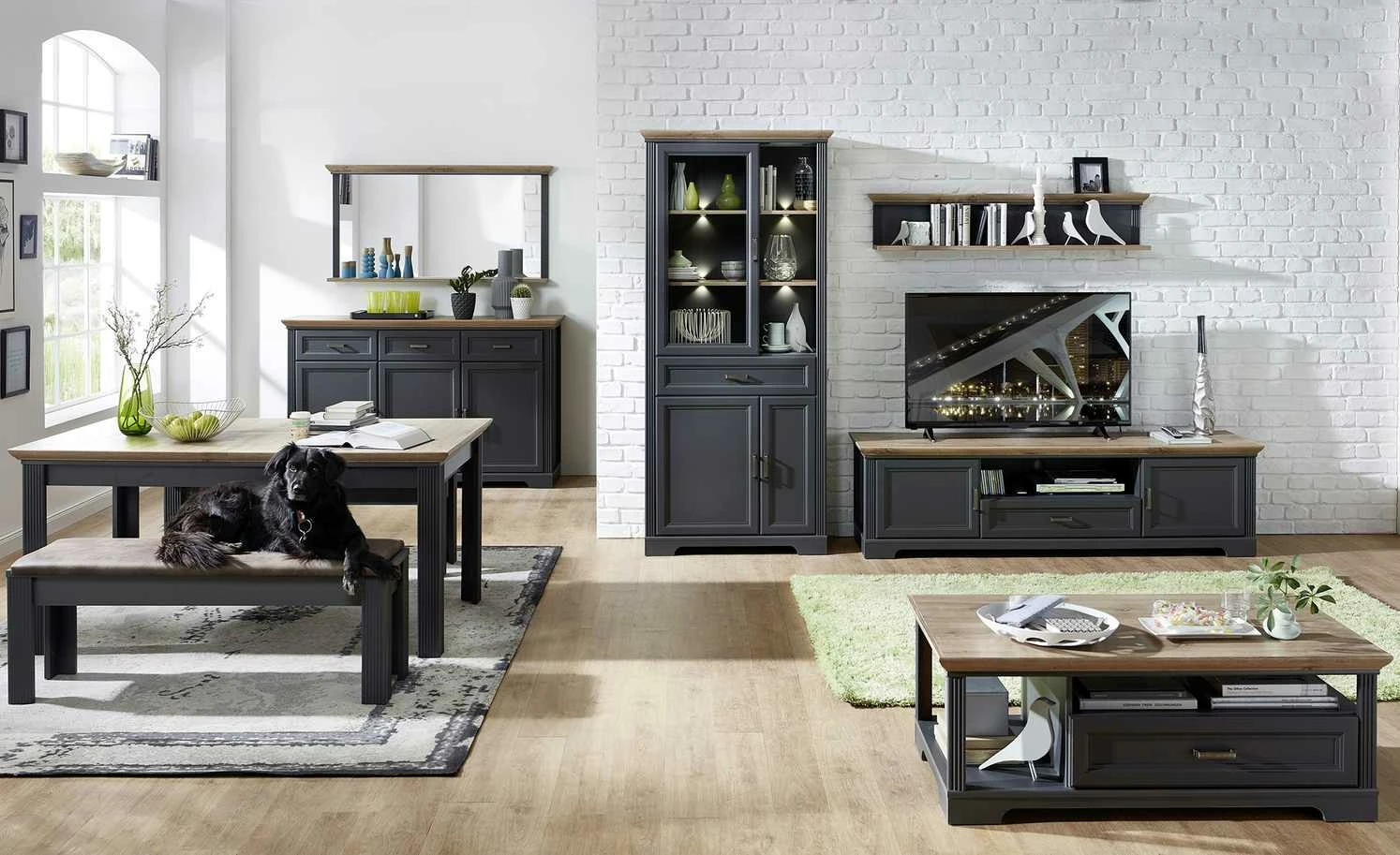 Der Spiegel Varese gehört zur gleichnamigen Serie und kann Räume optisch vergrößern. Er hat eine extra große Kristallspiegelfläche. Direkt darunter befindet sich eine praktische Ablage, die Sie für Fotos oder andere dekorative Dinge nutzen können. Varese ist in Asteiche (Nachbildung) und Graphitgrau designt. Dekor und Farbe bringen die Landhausverzierungen des Spiegels wunderbar zur Geltung.
