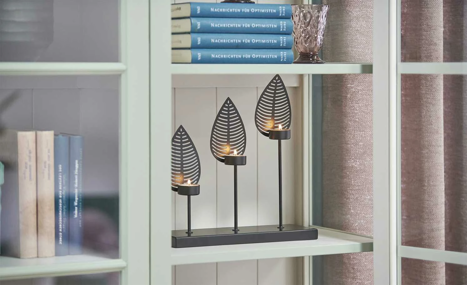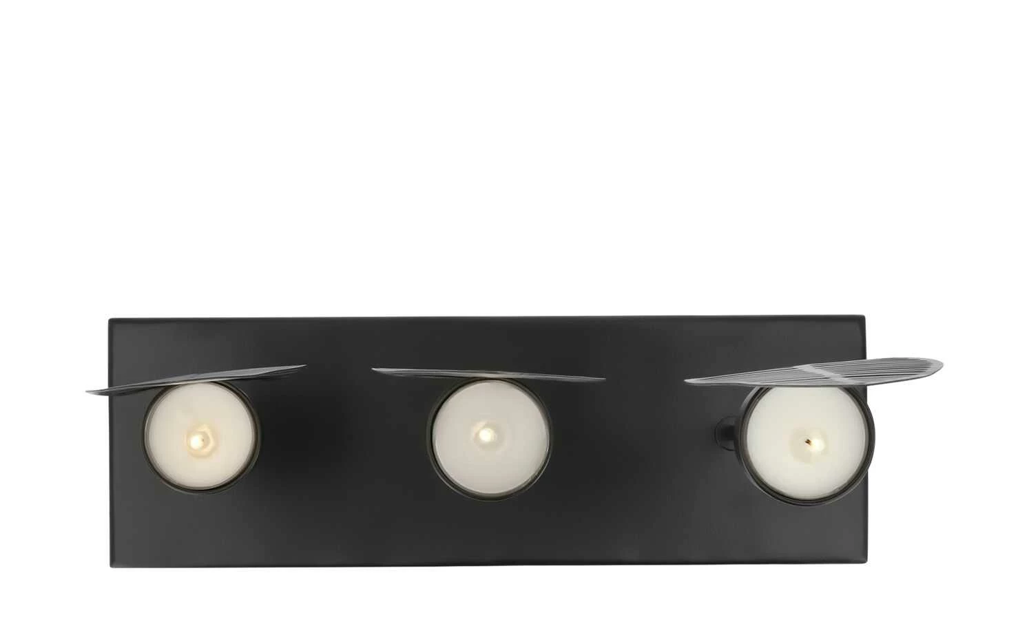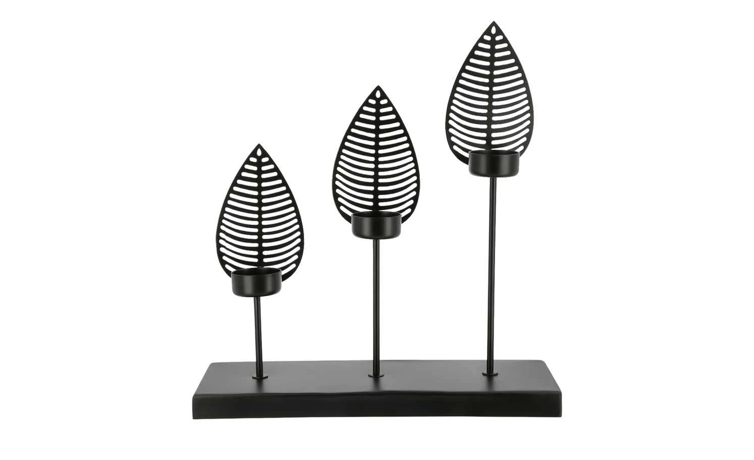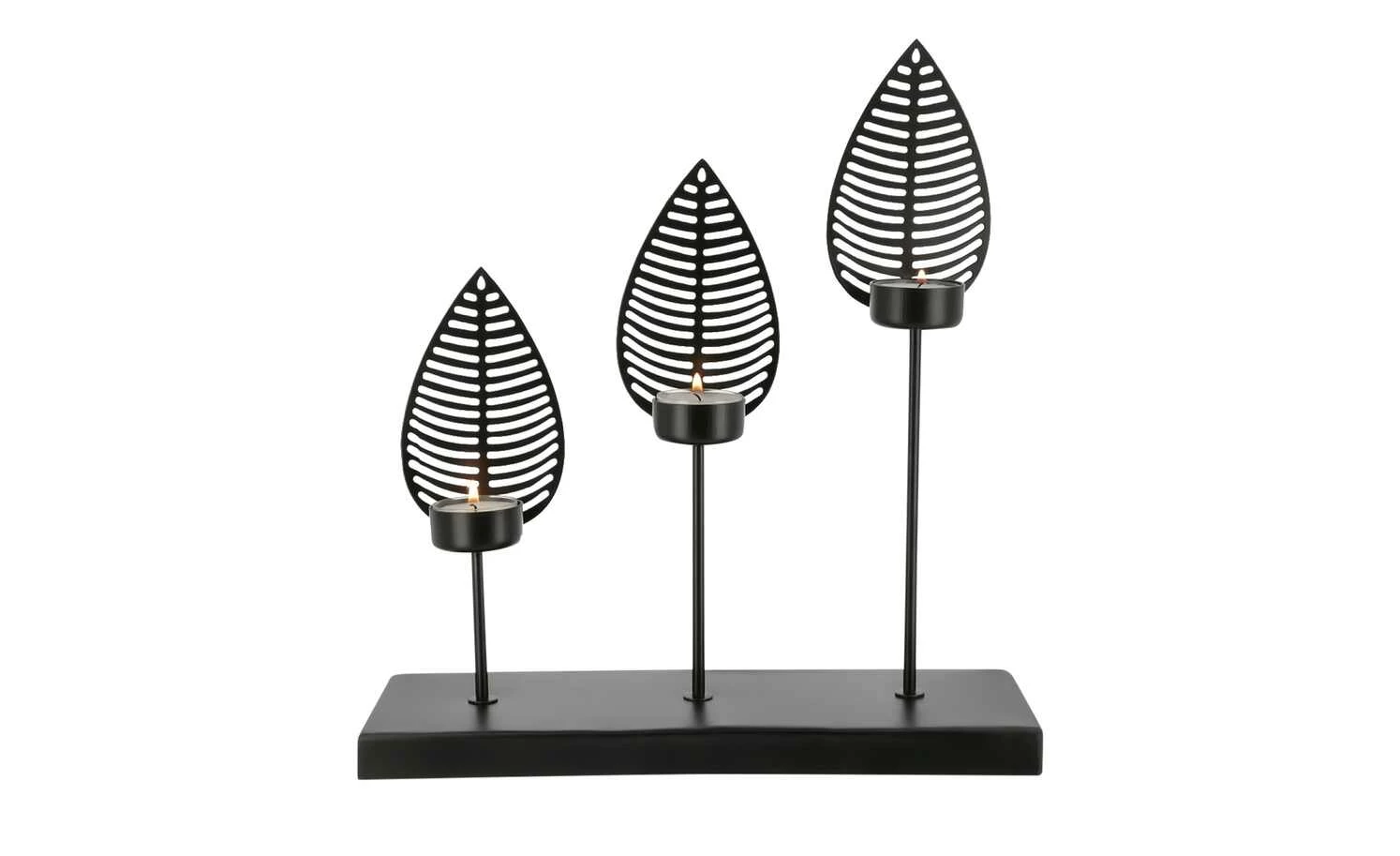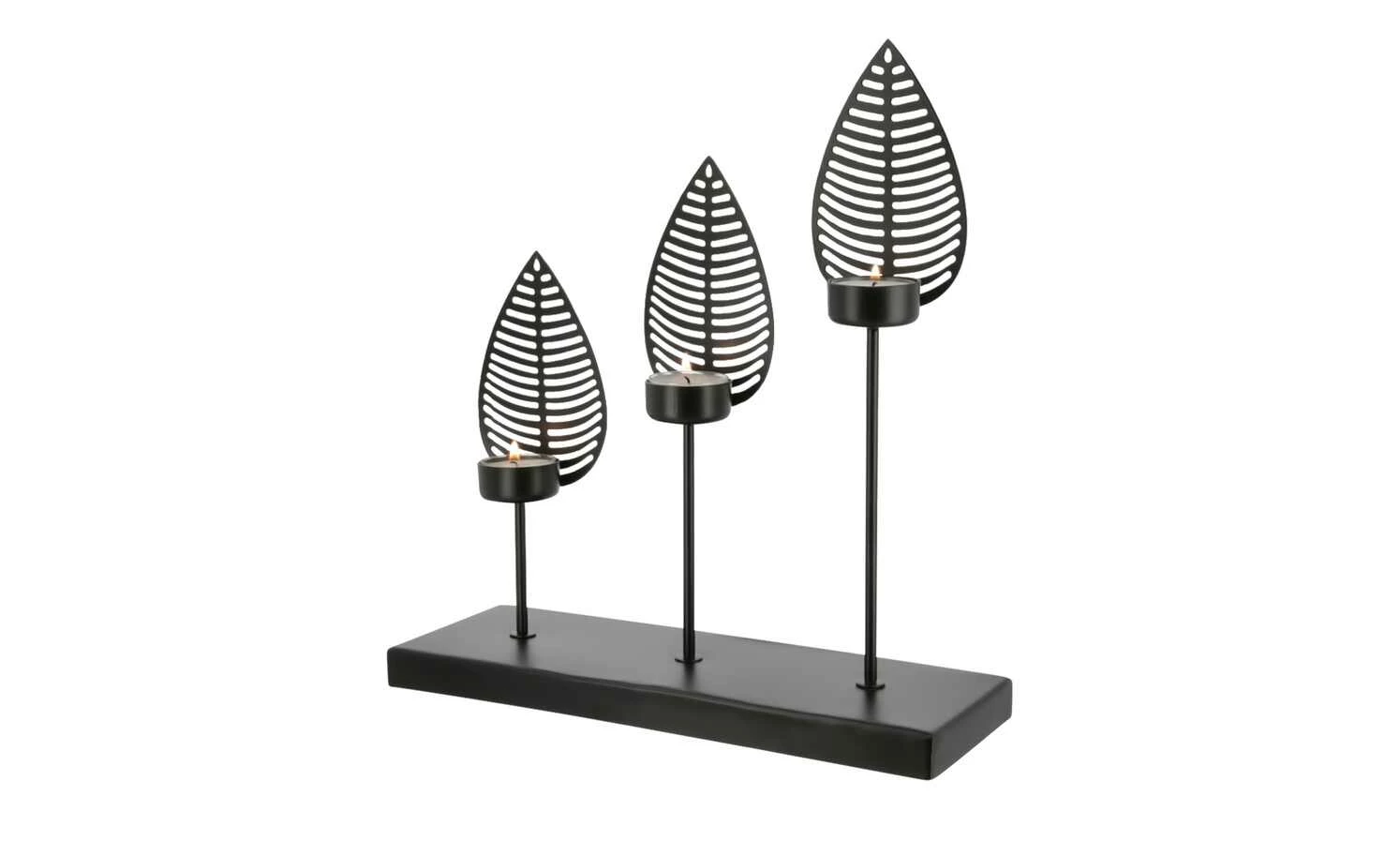 Zeitlos, elegant und mit jedem Einrichtungsstil kompatibel ist dieser Teelichthalter. Er besteht aus schwarzem Metall und ist dreistufig aufgebaut. In den unterschiedlich hohen Halter finden drei handelsübliche Teelichter Platz. Genießen Sie ein attraktives Lichtspiel und erzeugen Sie ein gemütliches Ambiente in Ihrem Wohnzimmer.