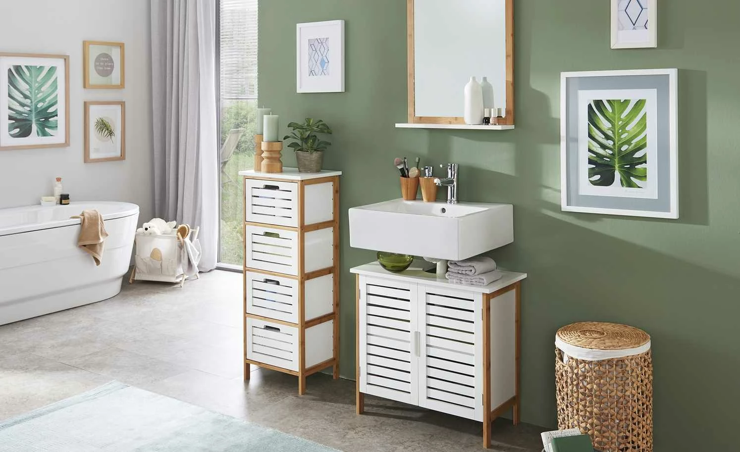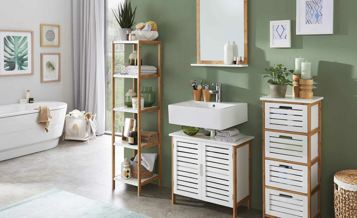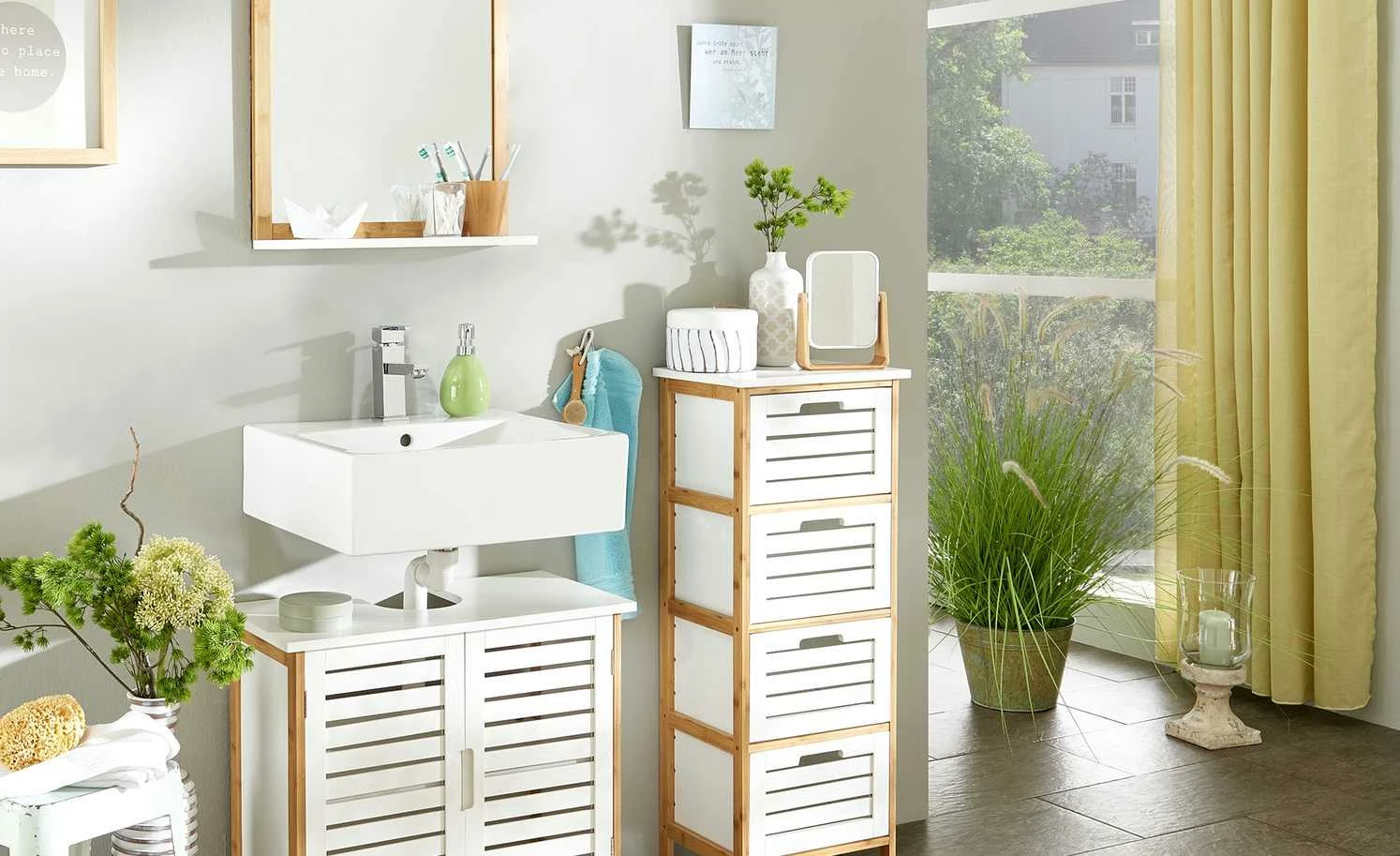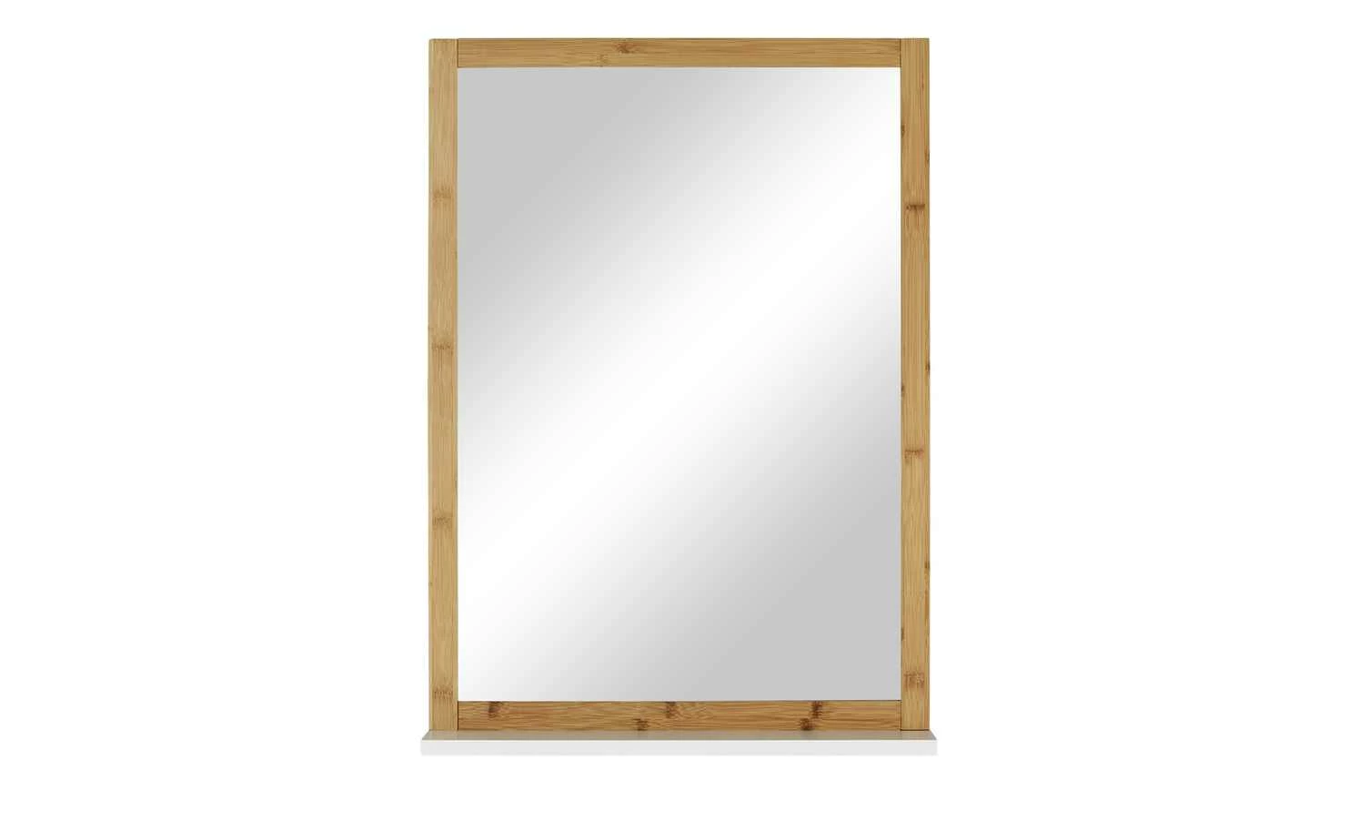 Im Bad, im Flur oder sogar Schlafzimmer – der Spiegel Clio ist praktisch. Er passt zur gleichnamigen Badserie, kann aber auch mit anderen Einrichtungen kombiniert werden. Der Spiegel wird senkrecht an der Wand platziert. Er hat einen Rahmen aus massivem Bambus. Die Ablage setzt sich in Weiß ab, sie ist lackiert. Nutzen Sie sie für Kosmetika oder auch Deko.