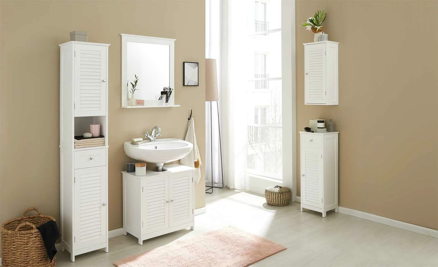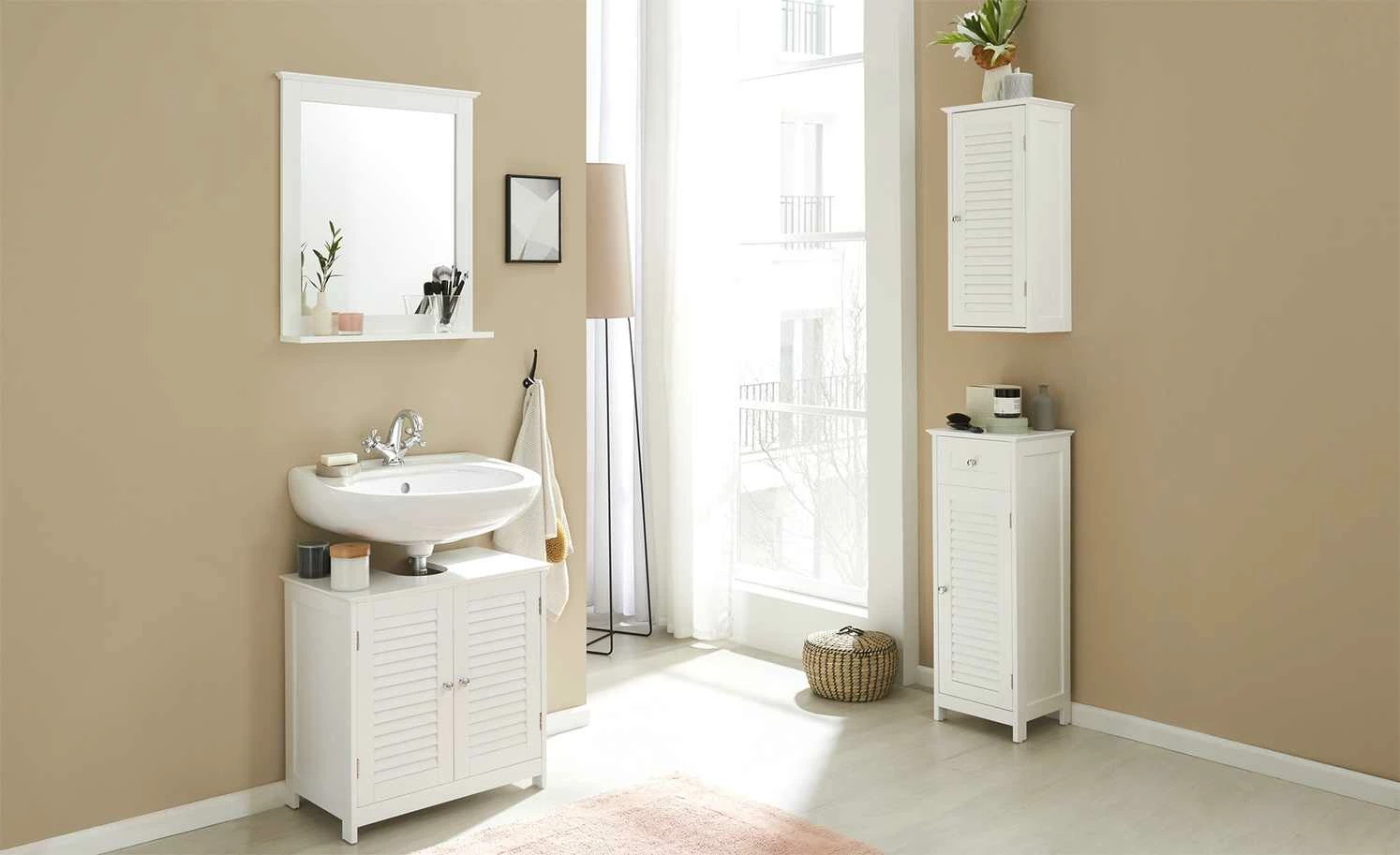 - Material Korpus: Holzwerkstoff mit Spiegel, Holzwerkstoff lackiert