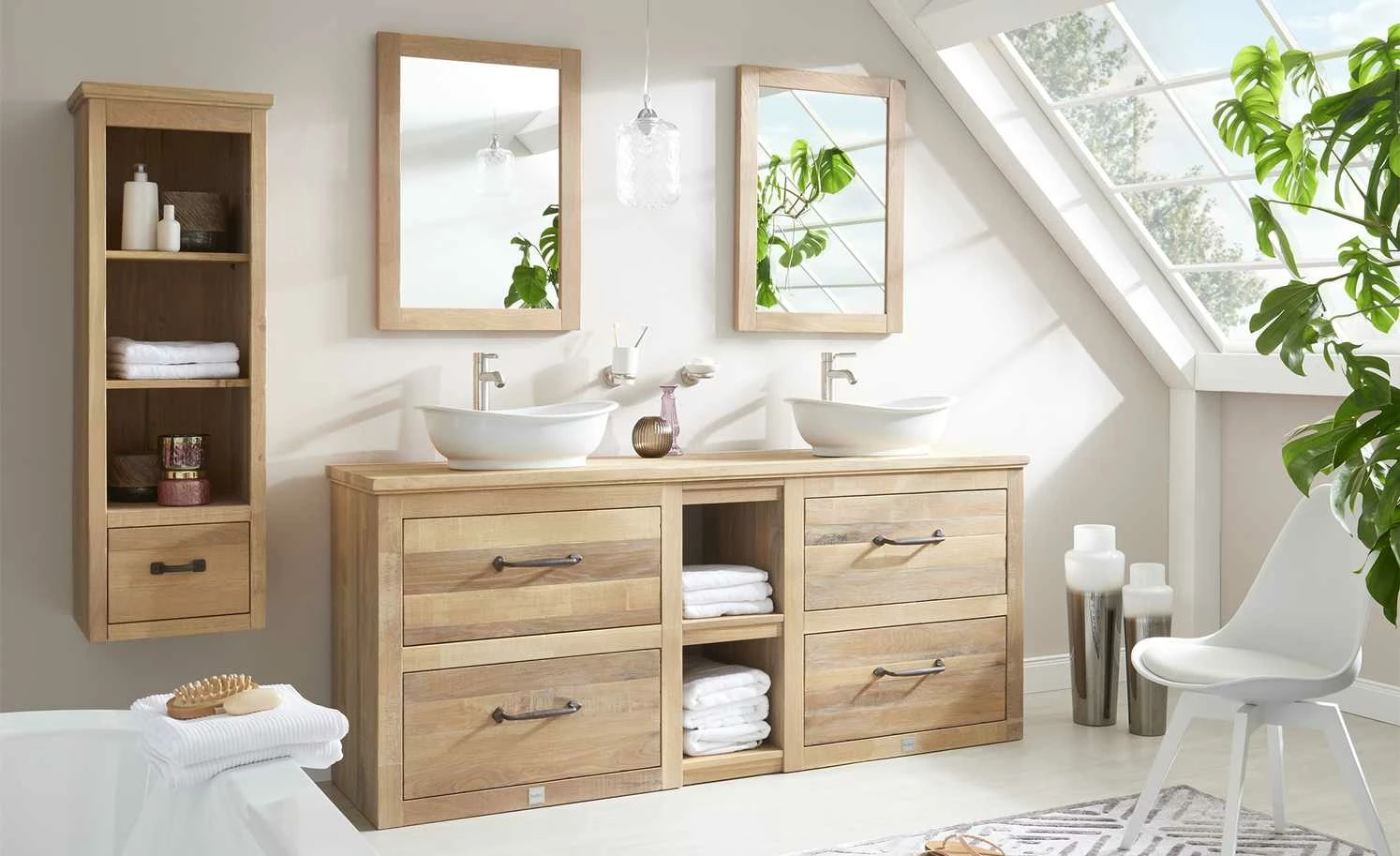 Ein Spiegel gehört in jedes Badezimmer. Wir empfehlen den Spiegel La Provence von VAN HECK, der zur gleichnamigen Badezimmerserie gehört. Er ist wandhängend und wird oberhalb des Waschbeckens platziert. Die Spiegelaufhängung ist senkrecht. Die Kristallspiegelfläche ist groß genug, damit Sie sich bis Brusthöhe in den Spiegel sehen können. Für den Rahmen ist massive Eiche verwendet worden. Sie hat eine hervorragende, langlebige Qualität.