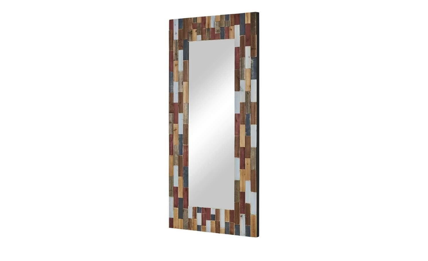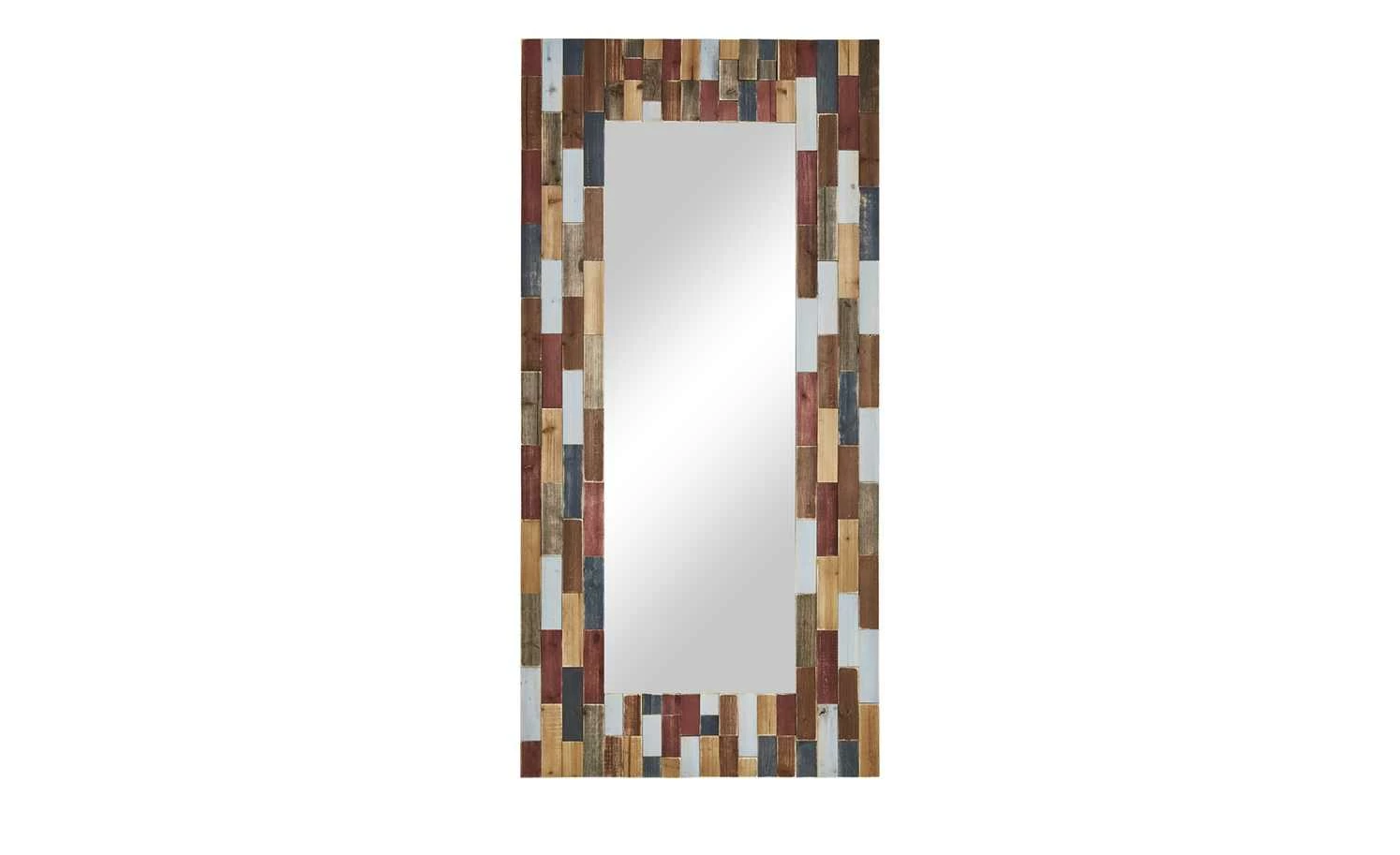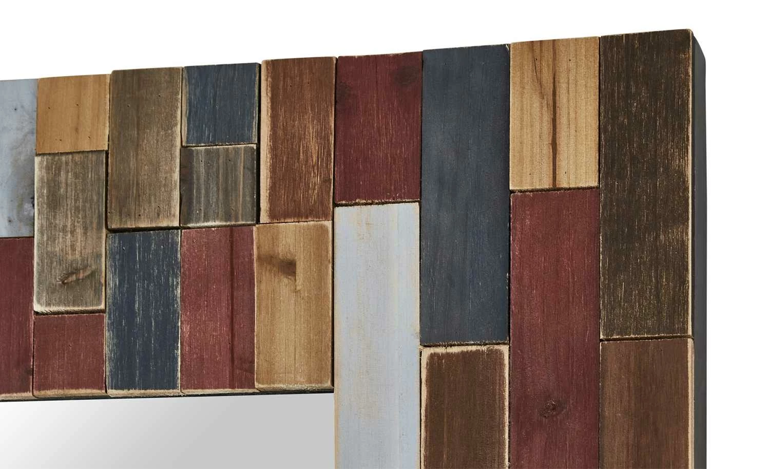 Der Wandspiegel Molino von Love it ist ein Blickfang für jeden Raum. Der Rahmen setzt sich auf vielen kleinen und großen Rechtecken zusammen, die die unterschiedlichsten Farben haben. Beim Material handelt es sich um massive Kiefer, die mehrfarbig lackiert wurde. Die holztypische Struktur ist dabei erhalten geblieben. Beim Spiegel selbst handelt es sich um einen Grauspiegel.