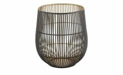 Bei diesem Windlicht trifft Gemütlichkeit auf klares Design ohne Schnickschnack. Das schwarze Metallgestell umgibt den innenliegenden Platz für die Stumpenkerze wie ein Gitter. Auf der Innenseite ist das Metall goldfarben und setzt einen schönen Kontrast zum Schwarz. Unser Tipp: Dank der edlen Farbgebung kommen neben weißen Stumpenkerzen auch farbenfrohe Kerzen gut zur Geltung.