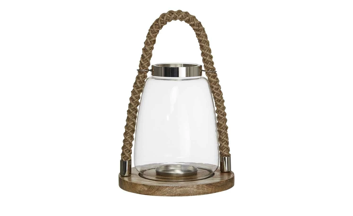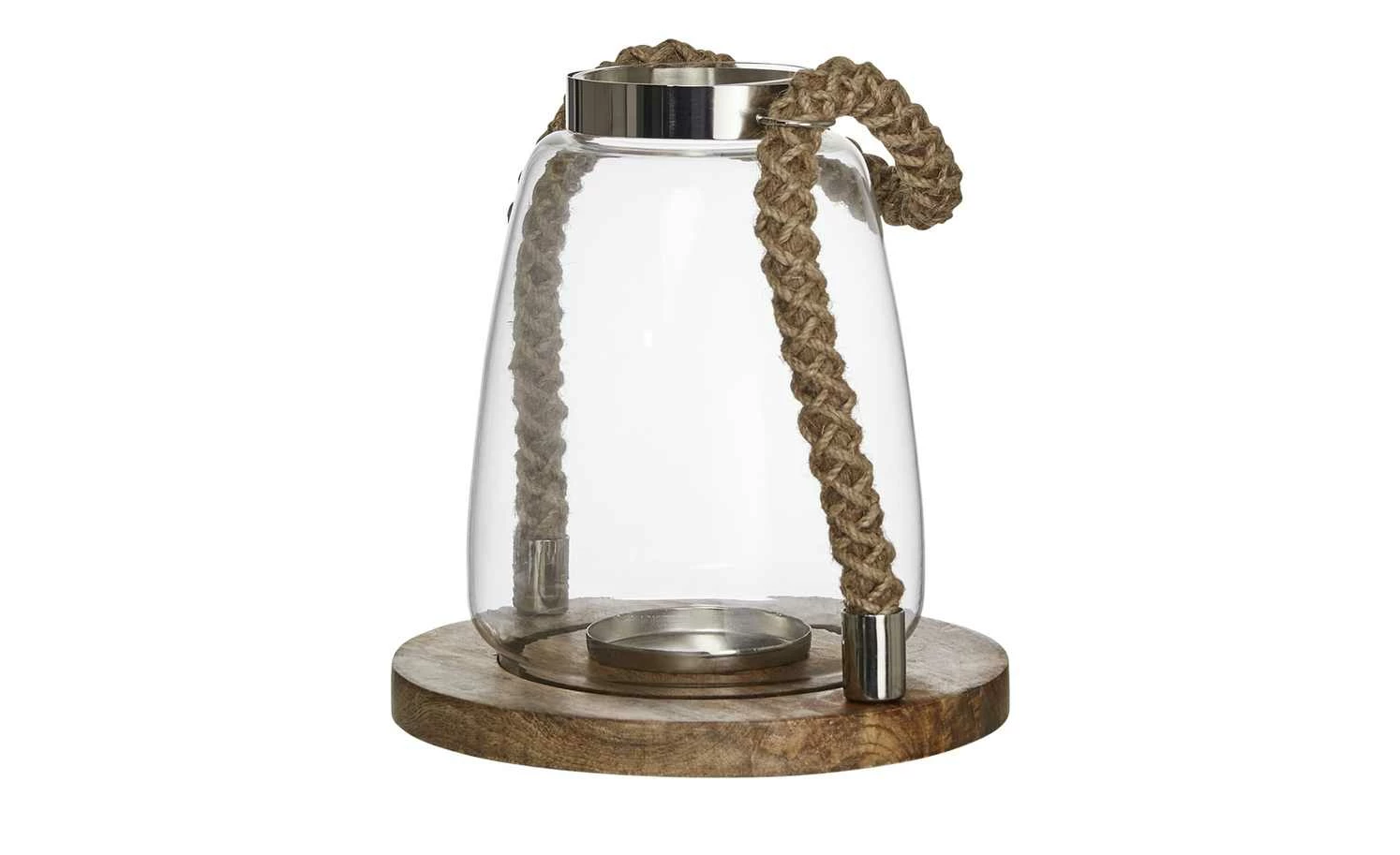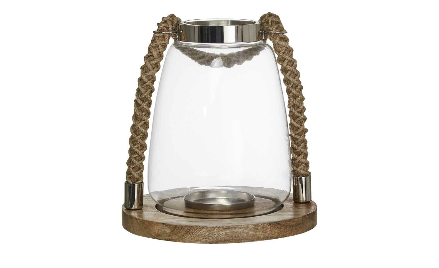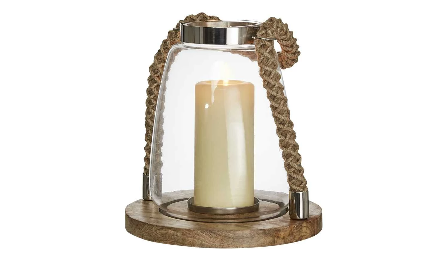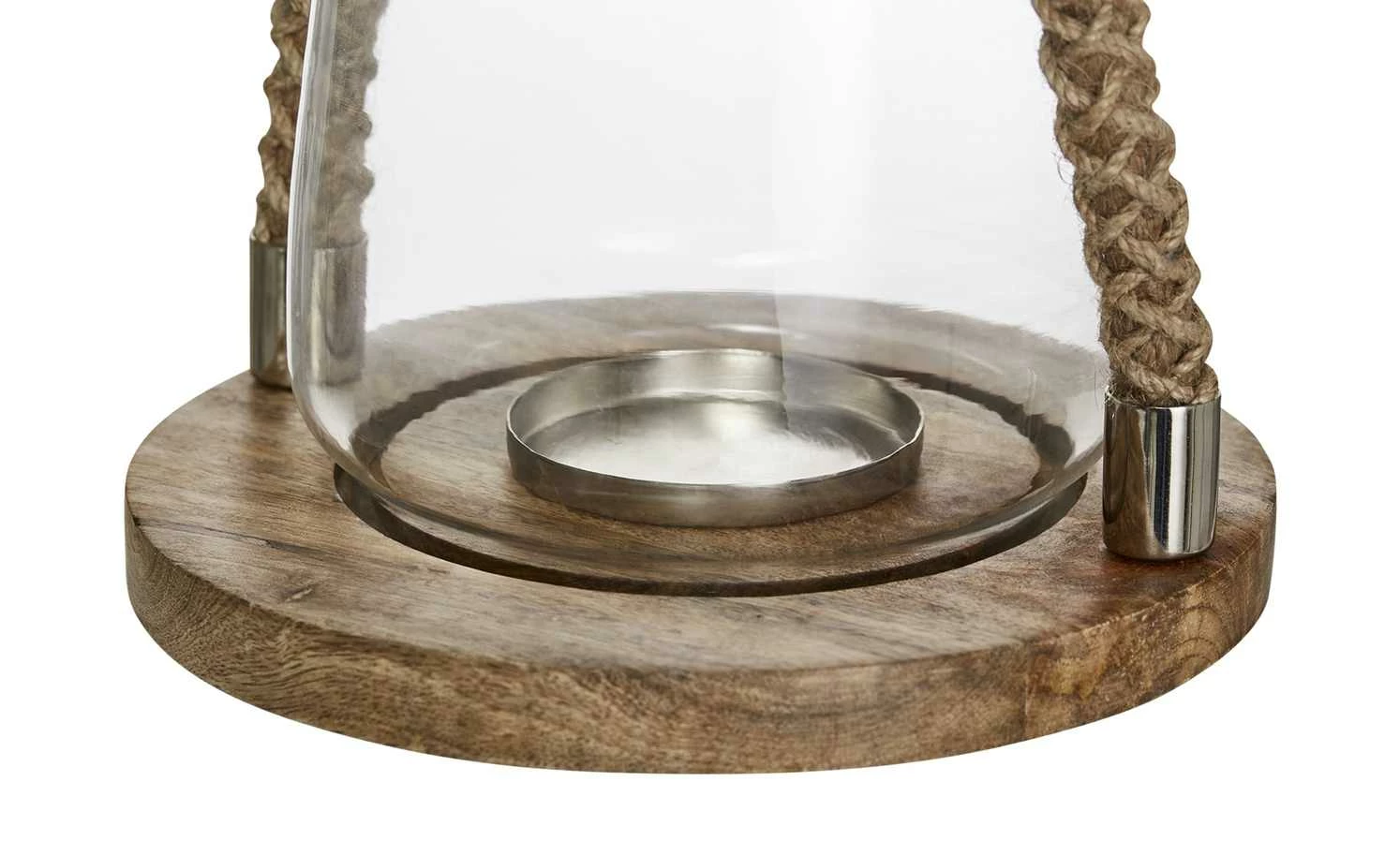 Maritimes Flair kommt mit diesem schönen Windlicht auf. Der Glaseinsatz für die Stumpenkerze wird von einer runden Basis aus echtem Mangoholz getragen. Dieses besitzt eine besondere Maserung, welche bei jedem Windlicht anders aussieht. Dadurch ist jedes Windlicht garantiert ein Unikat. Passend zum Mangoholz wurde für den Griff als natürliches Material Jute gewählt. Der liebevoll designte Griff erinnert an ein Schiffstau, wodurch das maritime Erscheinungsbild komplettiert wird.