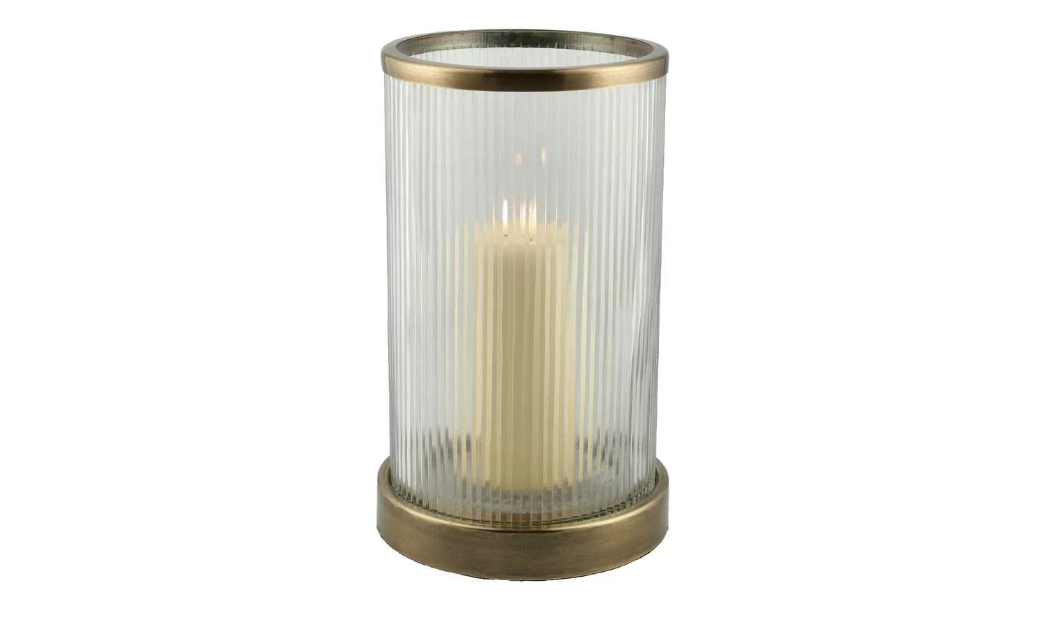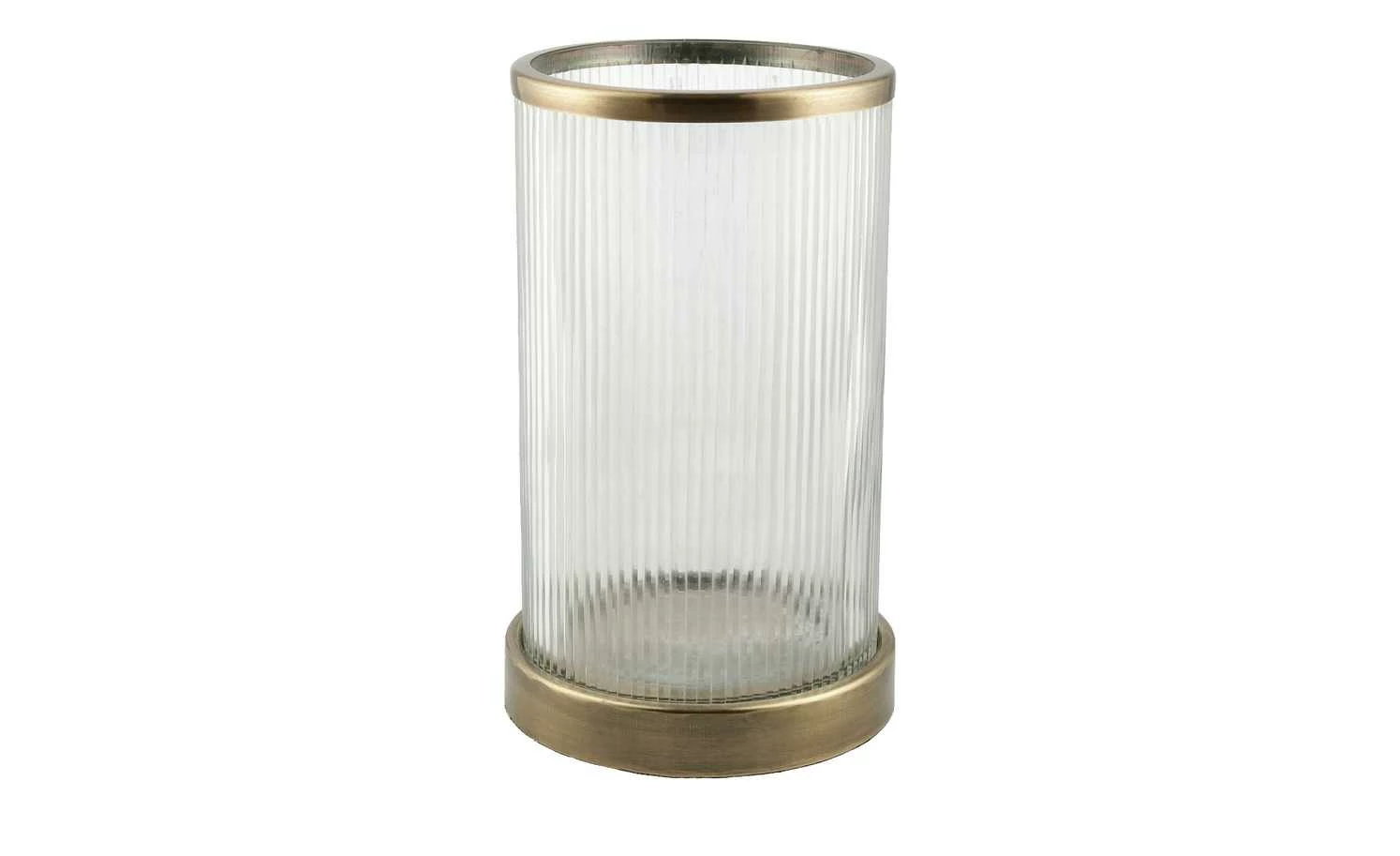Bei diesem Windlicht trifft Eleganz auf Retro. Goldfarbenes Metall am Standfuß und dem oberen Teil des Glaseinsatzes verleiht dem Windlicht einen edlen Touch. Durch die strukturierte Glasoberfläche des Zylinders erhält das Windlicht außerdem eine attraktive Retro-Note. Unser Tipp: Kombinieren Sie das Windlicht doch mal mit farbigen Kerzen. So erschaffen Sie zu saisonalen Events und besonderen Anlässen jedes Mal ein anderes Ambiente.
