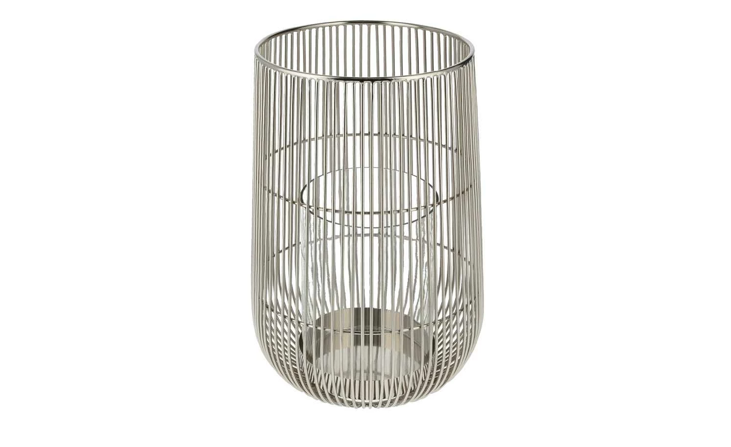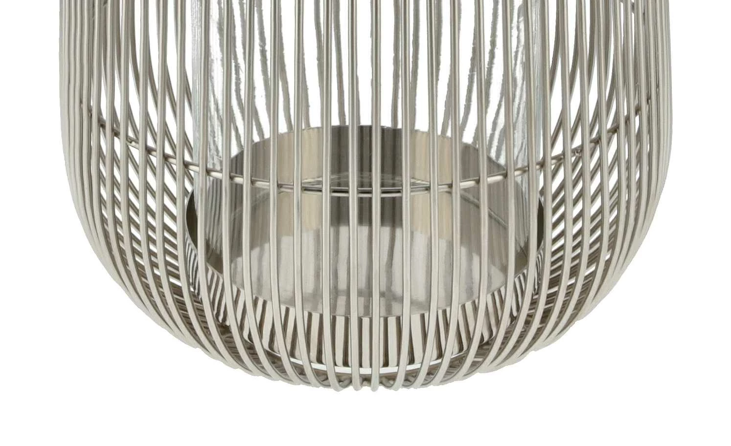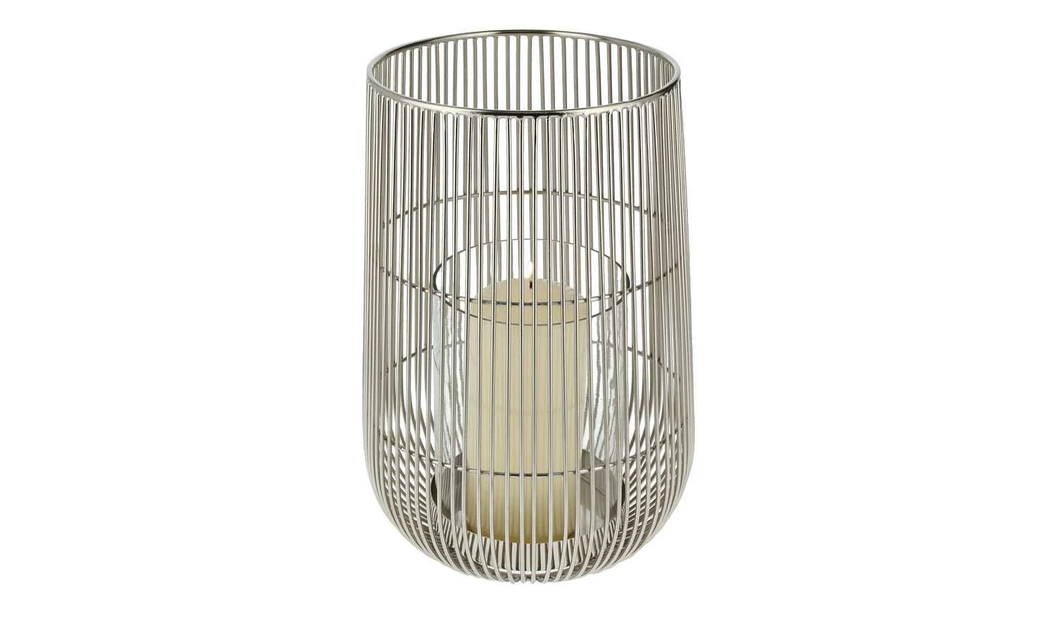 Bei diesem Windlicht trifft Gemütlichkeit auf klares Design ohne Schnickschnack. Das silberfarbene Metallgehäuse umgibt den innenliegenden Platz für die Stumpenkerze wie ein Gitter. Dadurch ist die Kerze gut sichtbar. Unser Tipp: Dank der zeitlosen Farbgebung kommen bunte Stumpenkerzen besonders gut zur Geltung.