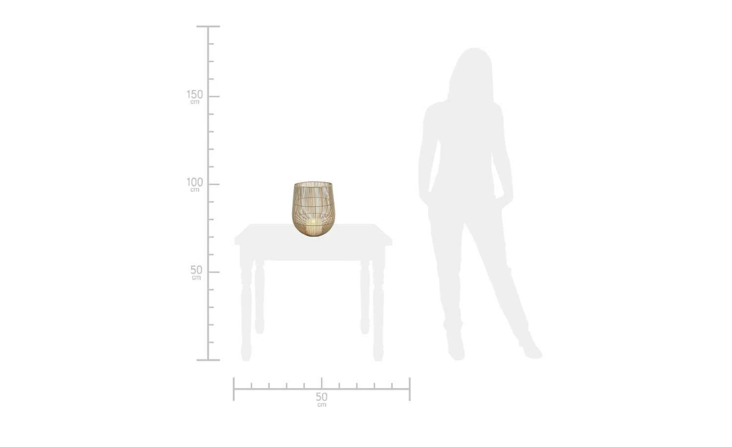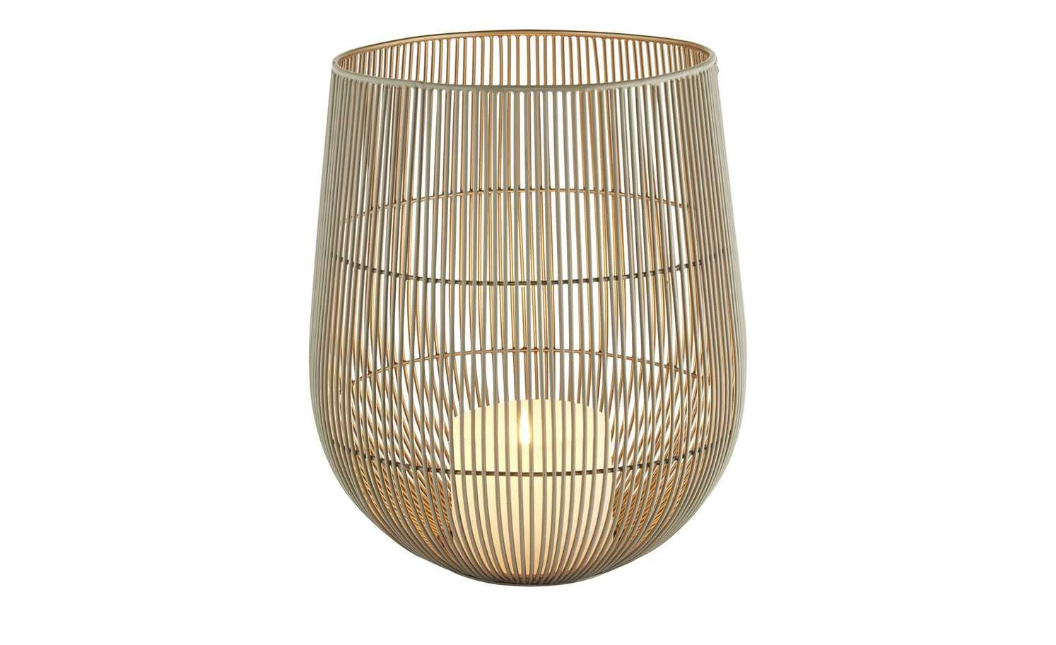 Bei diesem Windlicht trifft Gemütlichkeit auf klares Design ohne Schnickschnack. Das olivfarbene Metallgestell umgibt den innenliegenden Platz für die Stumpenkerze wie ein Gitter. Dadurch ist die Kerze zum Teil sichtbar. Die Innenseite des Windlichts ist goldfarben lackiert und veredelt das Erscheinungsbild gekonnt. Unser Tipp: Dank der edlen Farbgebung kommen neben weißen Stumpenkerzen auch farbenfrohe Kerzen gut zur Geltung.