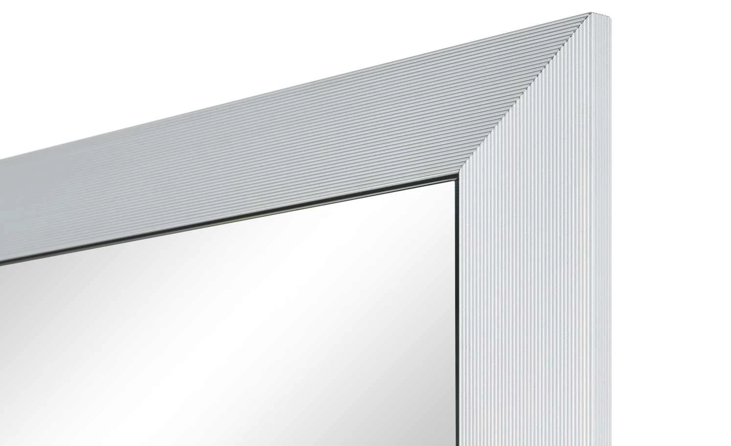 Spiegel sind gleich doppelt praktisch. Man braucht Sie zum Frisieren und Stylen. Und sie vergrößern Räume optisch. Der Spiegel Intro von der Marke Wohnwert kann genau das und sieht dabei auch noch toll aus. Ein breiter Rahmen aus Aluminium umschließt die große Spiegelfläche. Er hat eine geriffelte Oberfläche.