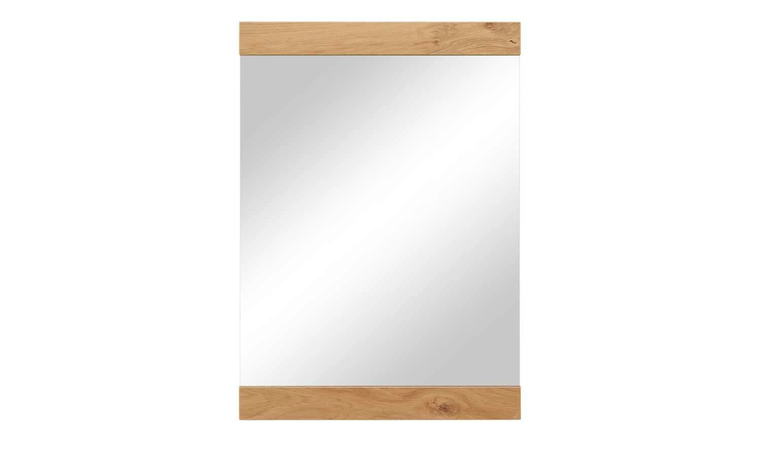 Ob im Set mit der gleichnamigen Garderobenserie, oder einzeln als kombinationsfreudige Ergänzung zu vorhandenen Möbeln: Dieser Spiegel bringt in jedem Fall natürliches Flair in Ihre vier Wände. Der 59 x 83 Zentimeter große Spiegel wird durch hochwertig furnierte Ränder oben und unten flankiert und akzentuiert. Dadurch wirkt er natürlich, hell und freundlich.